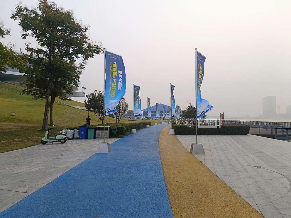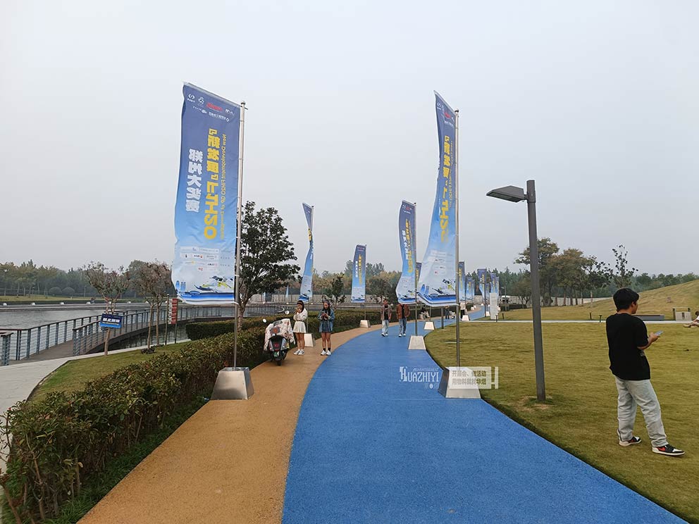 為了確保賽事的順利進行和現場氛圍的營造,鄭州華熠道旗出租公司參與賽事布置。這些道旗不僅色彩鮮艷、圖案精美,而且內容緊扣賽事主題,充分展現了摩托艇運動的刺激與激情。