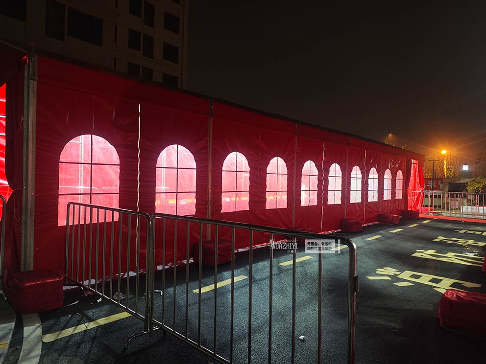 鄭州鐵馬出租布置護欄助力正都花園分房活動。在正都花園正在舉辦一場新房分房活動,現場有兩座紅色篷房吸引眼球。除此之外,還有一片片鐵馬護欄連接在一起,在篷房外面布置的秩序井然。