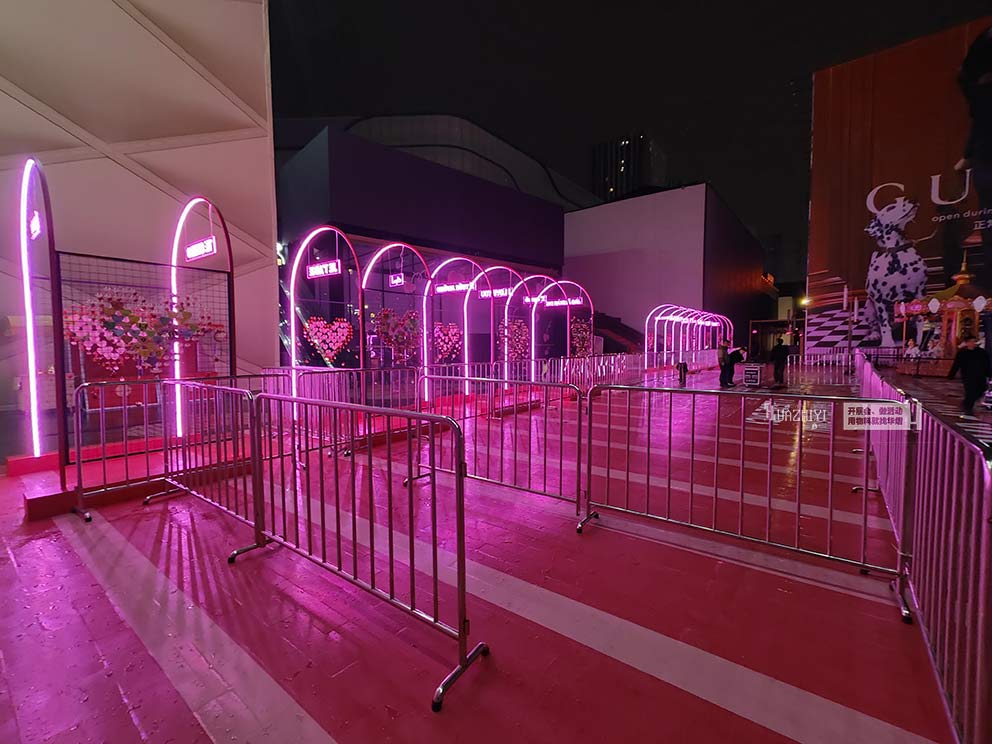 鄭州鐵馬護(hù)欄租賃公司來到SKP外圍廣場做布置。就在不久前的情人節(jié),鄭州鐵馬護(hù)欄租賃公司接到了一項(xiàng)重要任務(wù)——為SKP外圍廣場進(jìn)行精心布置。SKP作為購物中心,這次的情人節(jié)活動備受關(guān)注,而此次外圍廣場的布置更是意義非凡,旨在為顧客提供一個(gè)安全、有序且充滿美感的購物環(huán)境。