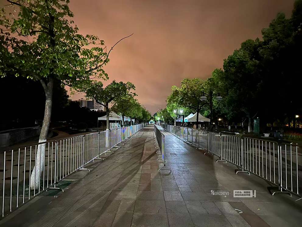 中途直道段按“雙側(cè)平行”布控,鐵馬沿賽道兩側(cè)整齊排列,內(nèi)側(cè)距離賽道邊緣30厘米,外側(cè)預留1.5米寬觀眾區(qū),形成“選手賽道+觀眾隔離帶”的清晰邊界;轉(zhuǎn)彎處則采用“弧形漸變”布控,鐵馬按轉(zhuǎn)彎半徑呈弧形排列,外側(cè)鐵馬適當加密,引導選手自然轉(zhuǎn)向,同時防止觀眾闖入彎道危險區(qū)域。